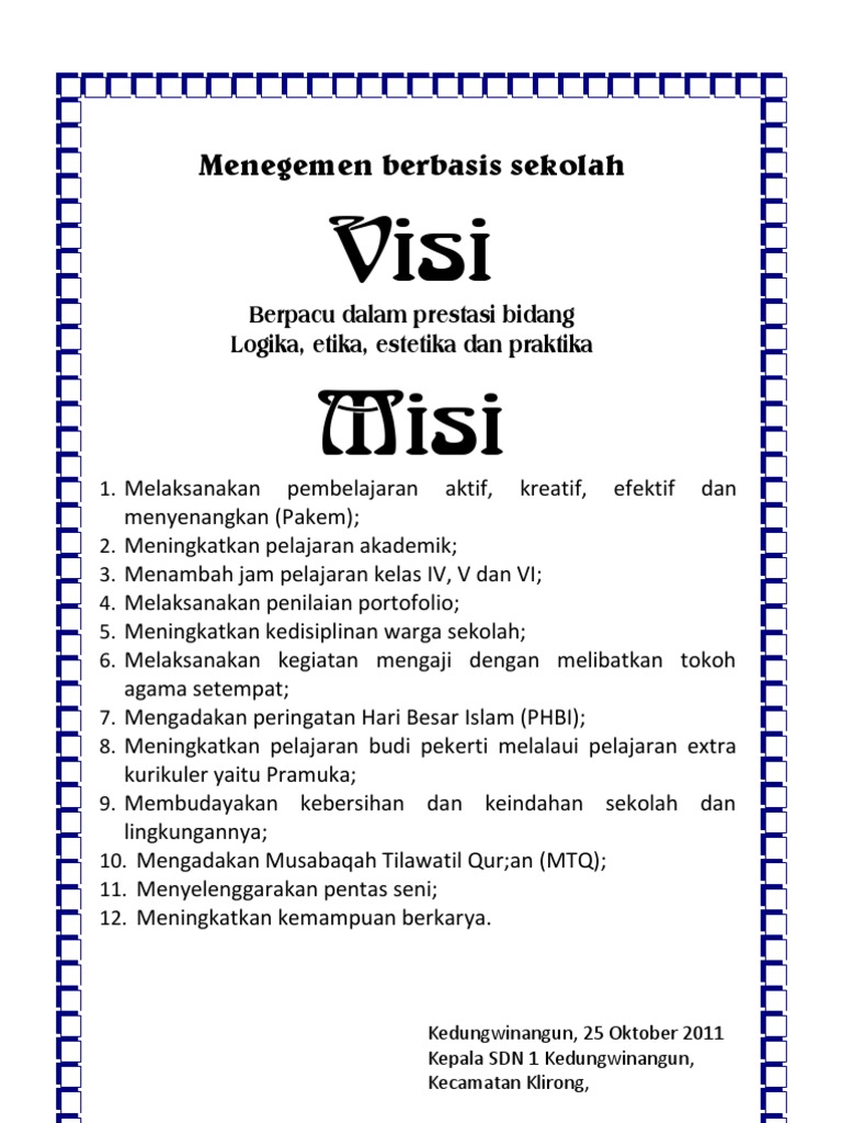 Contoh Visi Dan Misi Sekolah Pdf