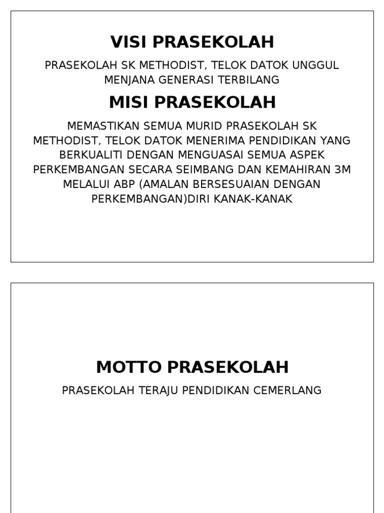 Ii Visi Misi Motto Prasekolah Pdf